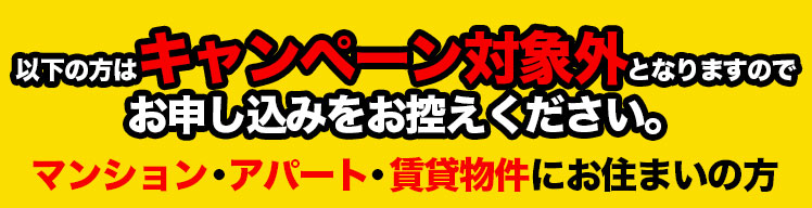 ※賃貸住宅にお住まいの方は対象外です。 ※マンション、アパートにお住まいの方は対象外です。 ※法人は対象外です。